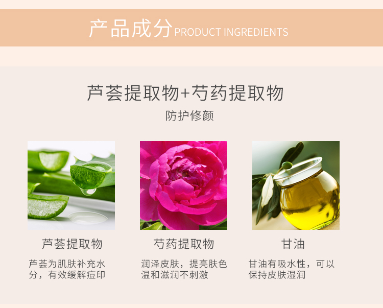产品功效:隔离外界刺激,保湿与防护双重功,亲肤而不油腻,修饰肌肤瑕疵,清爽自然质地,缔造健康匀皙亮泽。