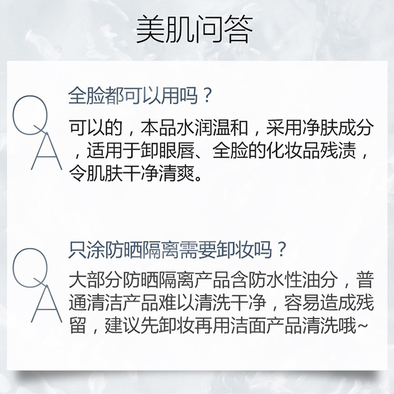 使用方法:取适量涂匀全脸,轻轻按摩将彩妆彻底溶解后 待彩妆完全乳化溶解后,再以纸巾擦拭全脸 再以水妍皙洁面胶加温水充分洗净。