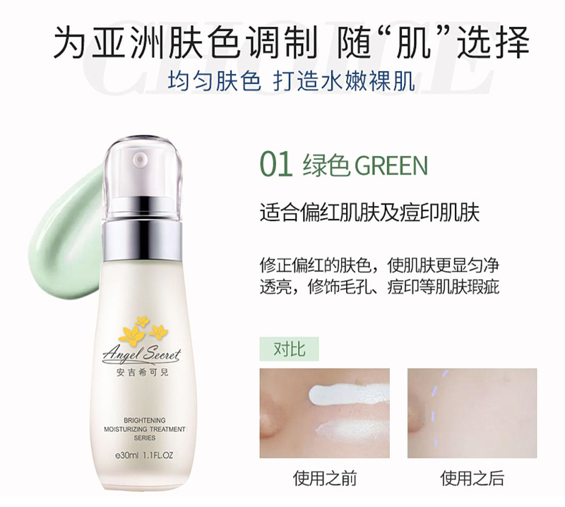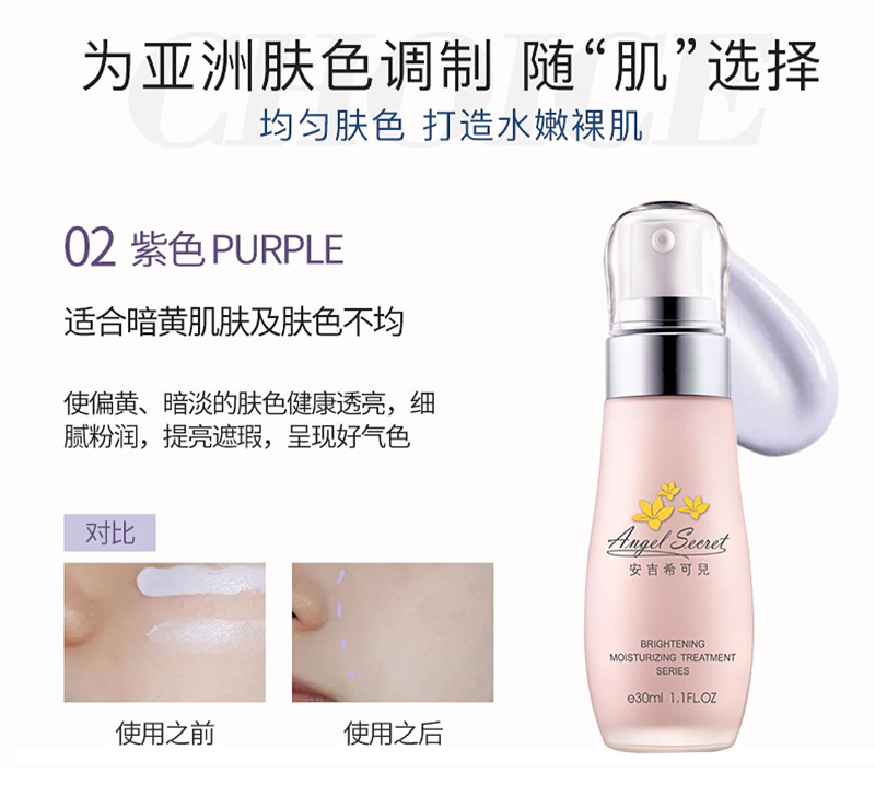 安吉希可儿 水妍皙隔离乳(紫)30mlSPF25,PA++修正偏黄及暗沉肤色,白...