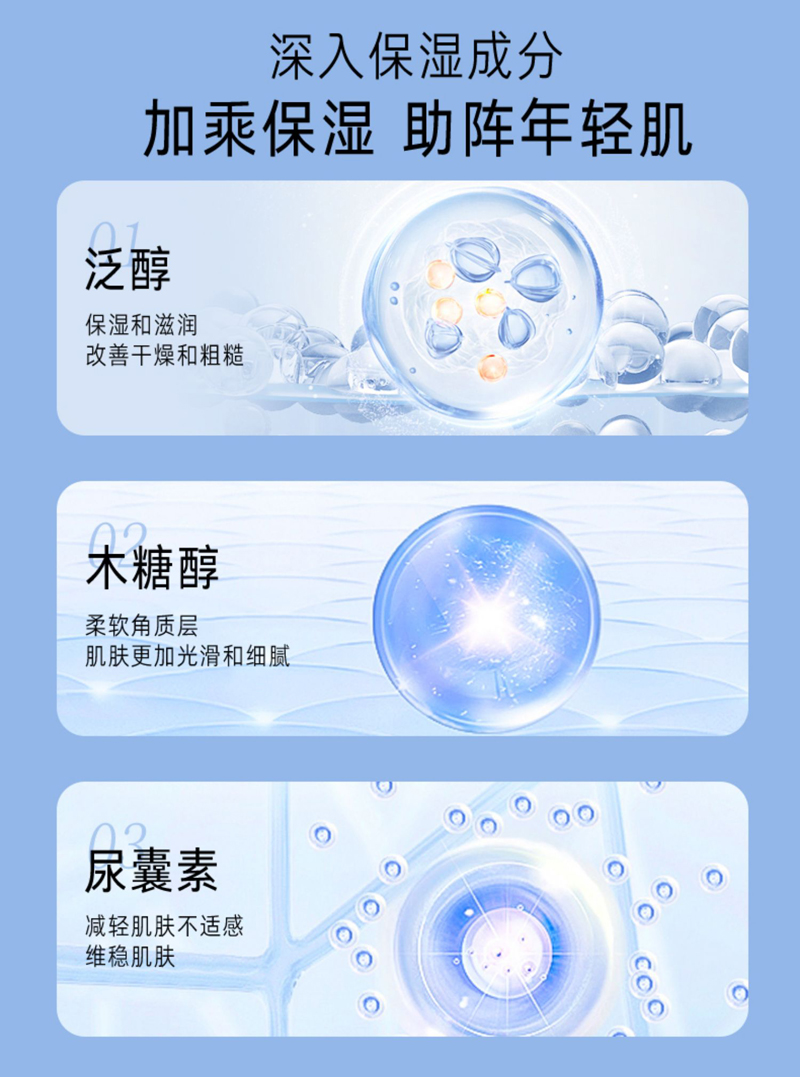 适合肤质:任何肤质 尤其适合干燥缺水。细纹肌肤。