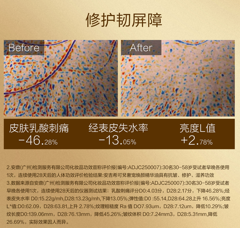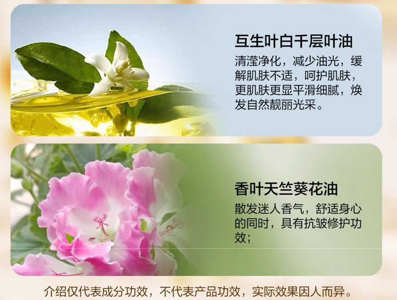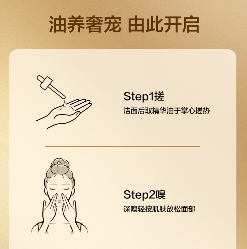 白池花籽油、霍霍巴籽油等多重奢华油协同作用,以油养肤,滋养抗皱,令肌肤水润细腻。(洁面爽肤后使用,取适量产品于掌心,均匀涂抹于整个面部,按摩直至完全吸收即可)
