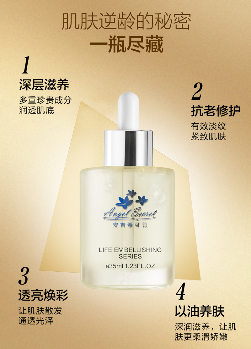 安吉希可儿 奢宠焕颜精华油35ml 以油养肤、补充脂质、抗皱淡纹、紧致弹润、充盈肌肤、修护屏障、透亮焕彩