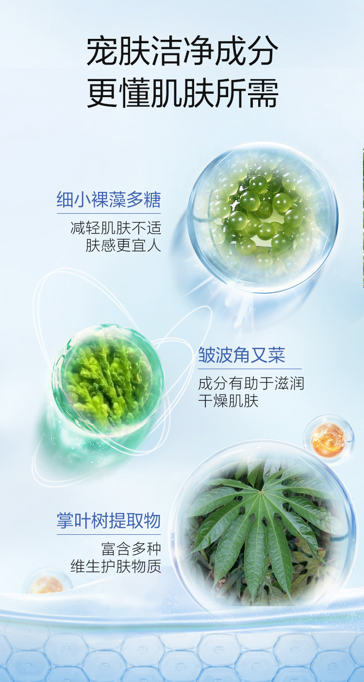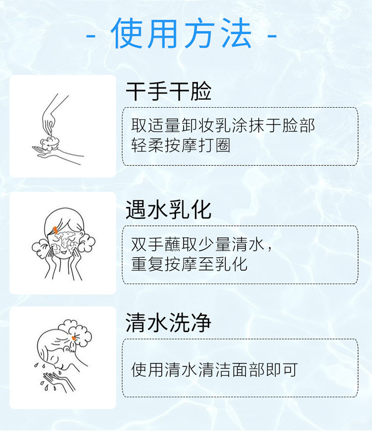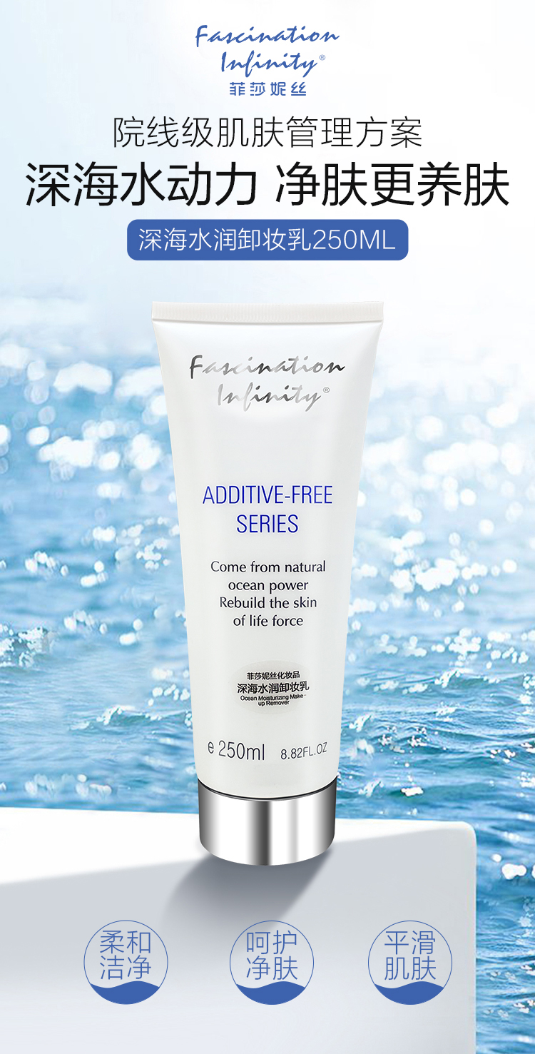 优异保湿果的柔和卸妆乳,温和无刺激,能溶解彩妆及多余油脂,轻盈完整地包覆您的脸,轻松卸除脸部污垢,蕴含深海多种天然保湿成分,可软化肌肤老死,恢复肌肤的弹力与张力,令卸妆后的肌肤水润舒爽,无紧绷干涩的感觉。
