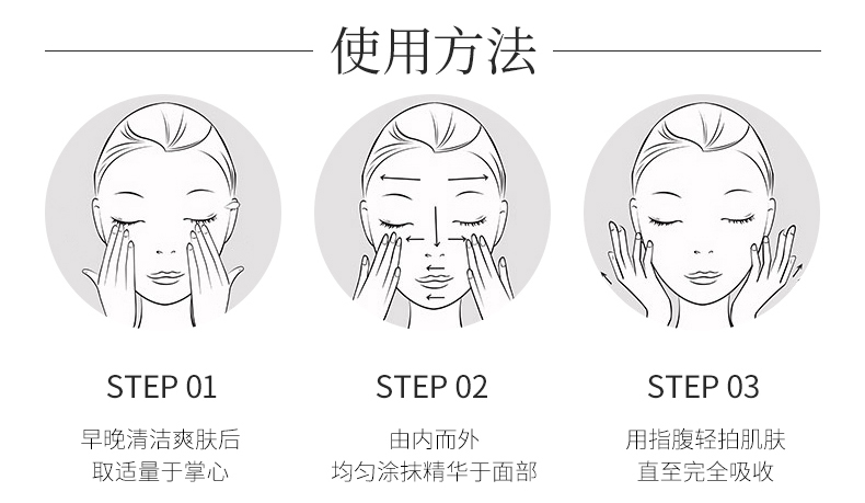 使用方法:早晚洁肤爽肤后,取适量均匀涂抹于全脸,轻拍或按摩至吸收即可。