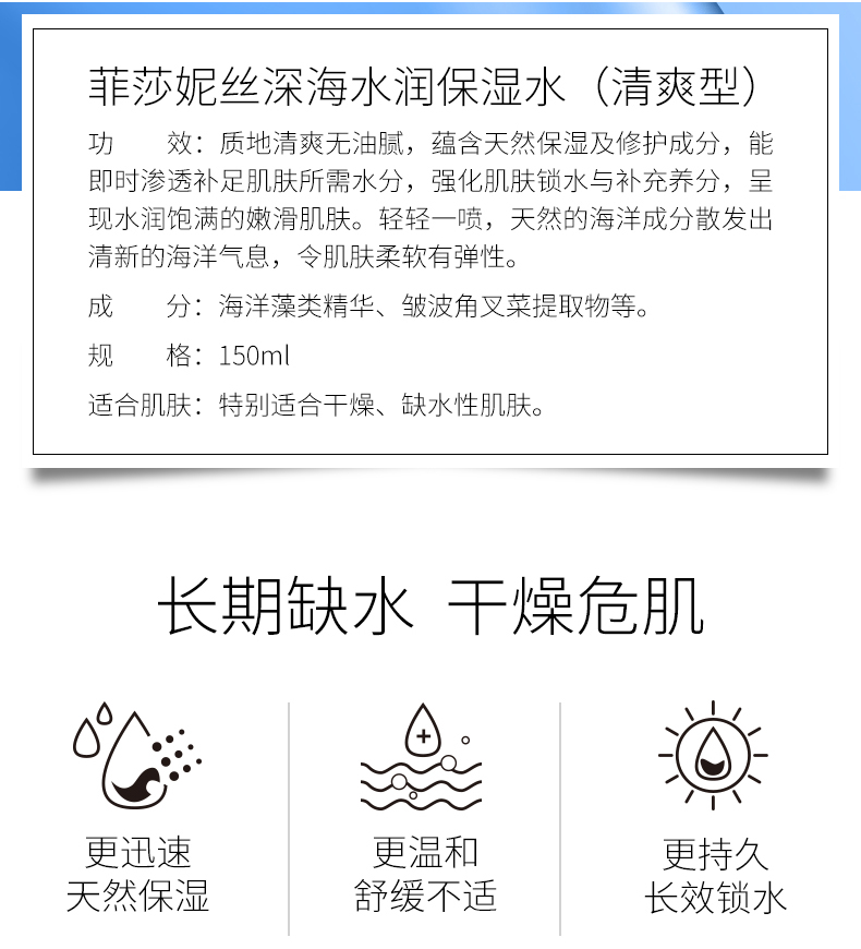 菲莎妮丝 深海水润保湿水(滋润型)150ml 补水保湿,滋养肌肤,改善干燥、脱皮...
