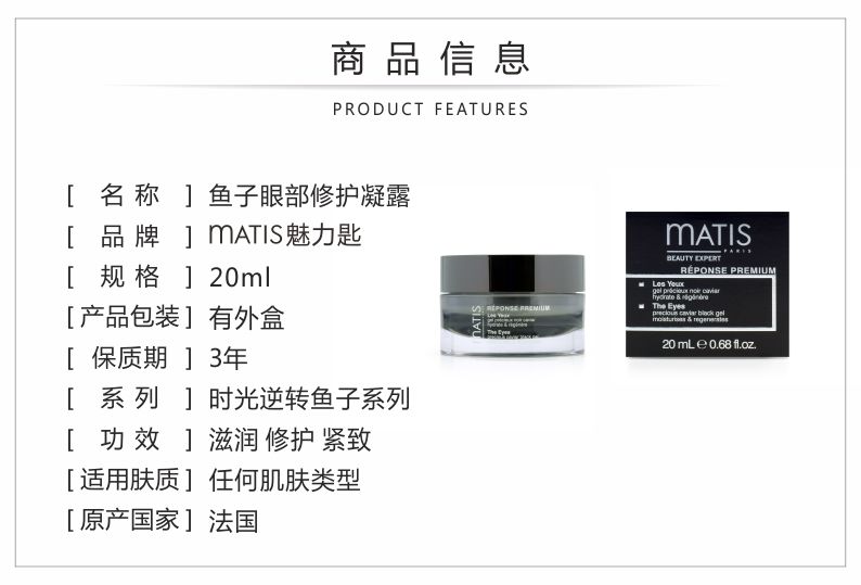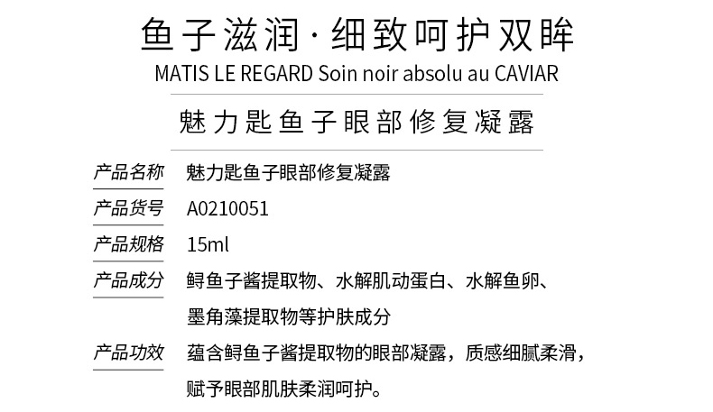 MATIS魅力匙 赋护紧肌抗皱眼霜15ml(鱼子眼部修复凝露)深度滋养,补充养分,淡化皱纹细纹干纹,提升眼角,减缓眼袋黑眼圈