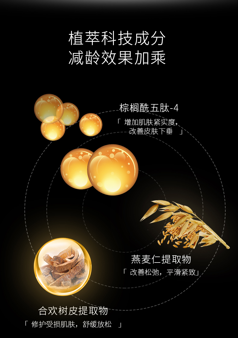 主要成份:DENSIDERMTM魔幻紧致平滑肌******成份、弹力肽、小麦蛋白、天然植物复合精华、海洋生物精华、抗糖化复合物