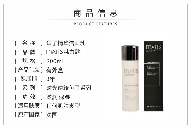 MATIS魅力匙 赋护净肌洁面乳200ml(鱼子养肌洁面乳)(微泡)清洁彩妆及污垢,补充水分,水润舒适,滋润不紧绷,紧致有光泽