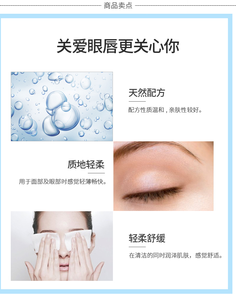 适用人群:有卸除妆容,适合眼部肌肤特别敏弱的人士使用。