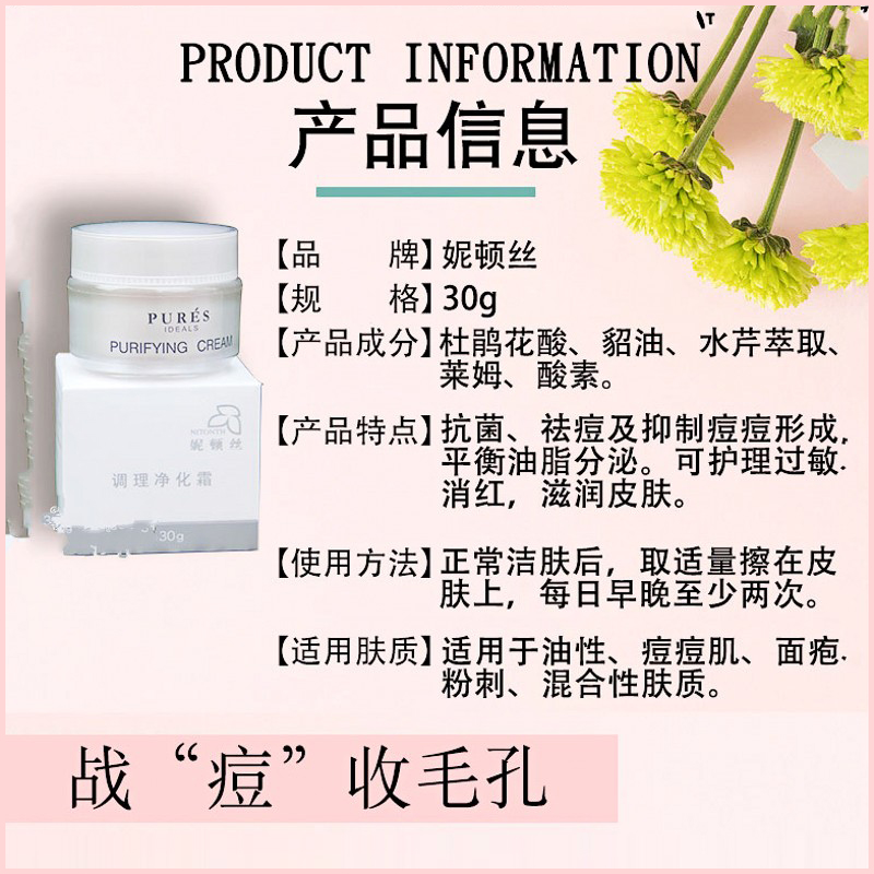 妮顿丝 活性调理净化霜30g 改善痘痘粉刺,脓疮痘印,油脂分泌过盛等油性混合性肌肤