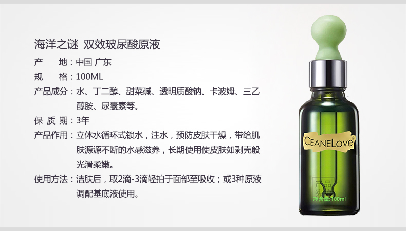 3.大分子级玻尿酸的优质保湿能力,提高肌肤的储水量;