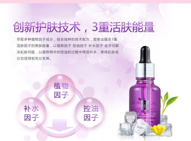 使用方法:洁肤爽肤后,取本品2-3滴,均匀涂于面部、颈部,轻柔按摩至吸收。搭配精华或营养霜使用果会更好。