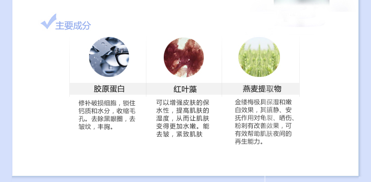 主要成分:红叶藻提取物、燕麦蛋白提取物。
