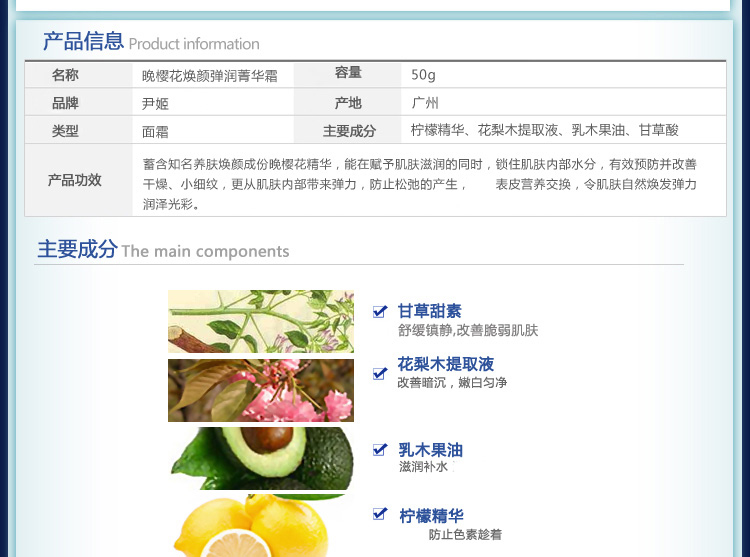 尹姬 晚樱花焕颜弹润菁华霜 50g
