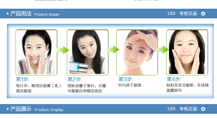 使用方法:洁肤后,取本品适量均匀涂于面部轻拍至吸收。