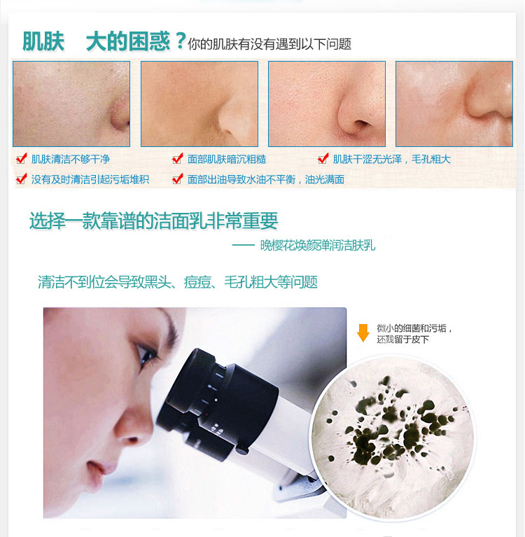 产品功效:温和乳液质地,特别针对松弛无力的干燥肌肤,能轻柔改善脸部残妆、各种污垢和废旧角质,同时保留肌肤水分,令肌肤洁净清新、水嫩透亮。