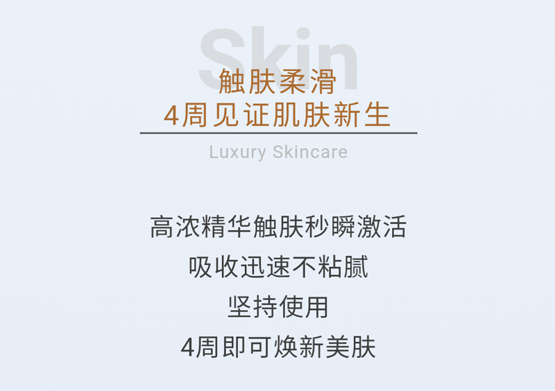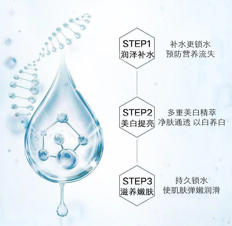 产品功效:智能亮白步,即时补水、锁水,同时有抗击肌肤氧化;智能醒肤、智能锁水,给肌肤充分的水分滋养,肌肤水润亮白。
