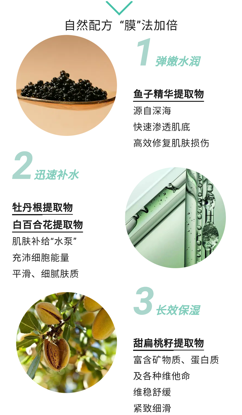 1.限量版金珠面膜多方面开启肌肤吸收通道,加倍促进鱼子精华、小分子肽、植物提取物等营养护肤成分吸收,改善肌肤微循环,修复多种肌肤问题。