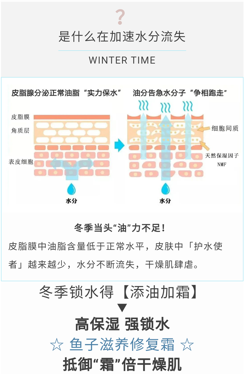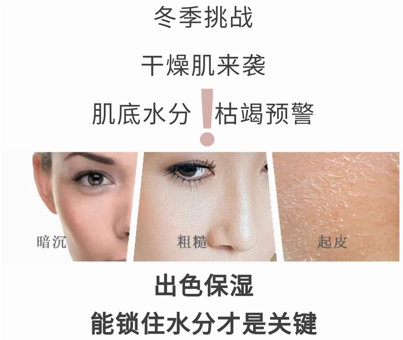 2.深层滋养:高活性保湿和修复成分贯穿全层皮肤,高倍储水、提升肌肤润泽度,有缓解干裂脱屑不适的症状。
