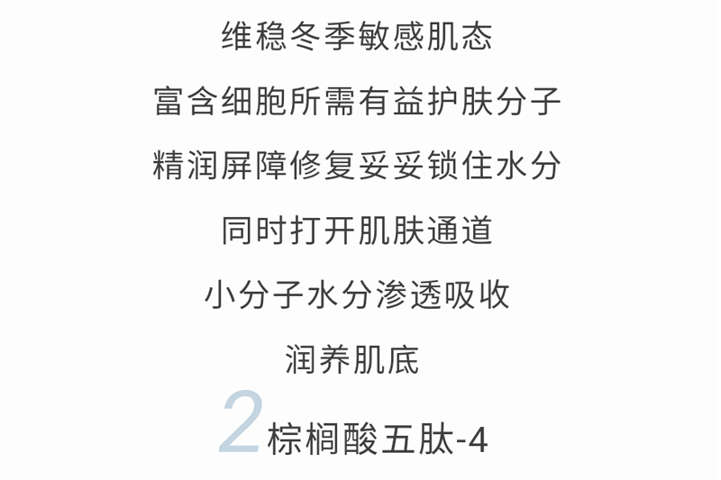 产品功效:高滋养和密集修复肌肤,即使在干燥的冬日里都会呈现盈润光泽的状态!