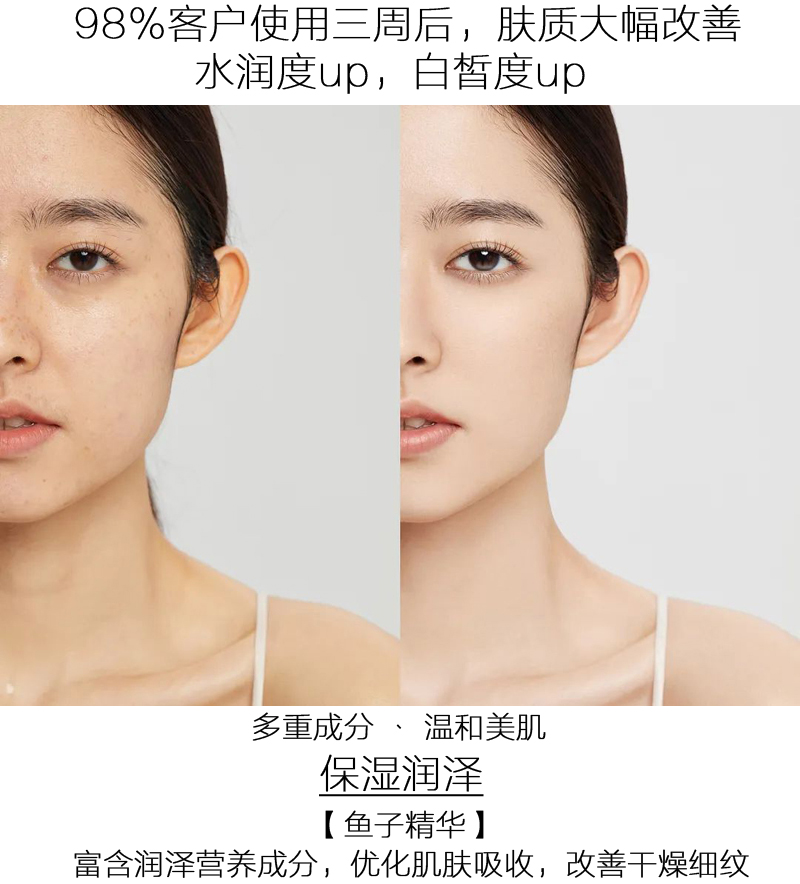 2.水润光彩:持续补水、锁水,肌肤水润弹性。