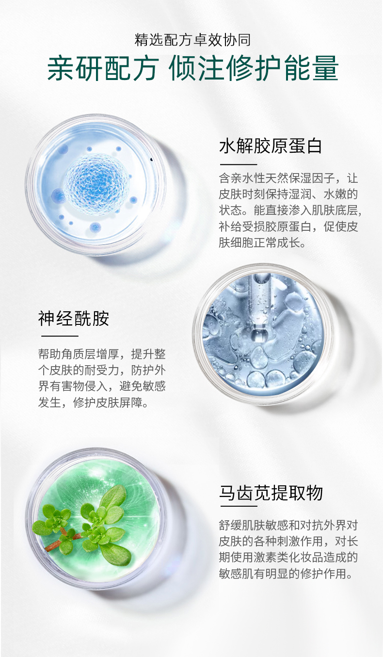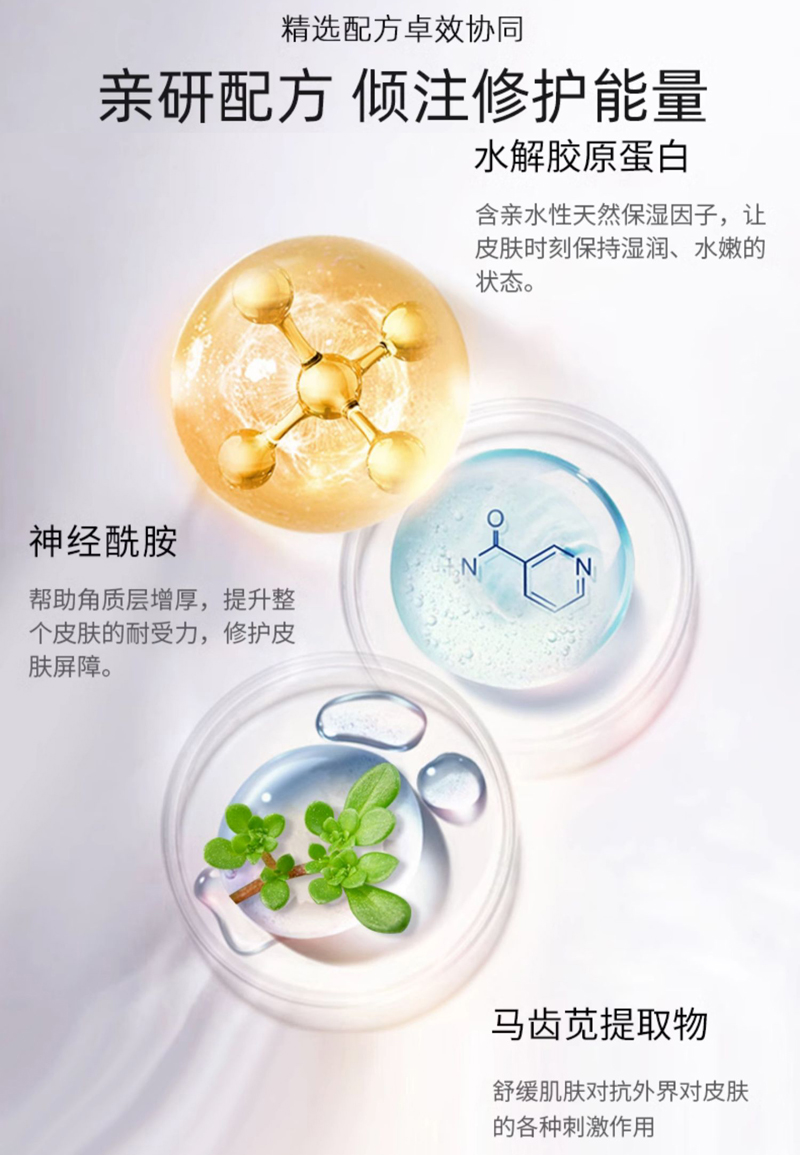 产品功效:补水保湿,修护肌肤,充盈滋润,令肌肤水润柔嫩。