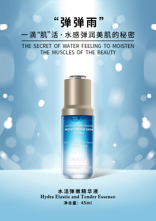 产品功:水感丝滑的质地,让每寸肌肤即时感受淋漓水分的愉悦滋养,滴滴精华释放水活弹力,深透补水层层滋养,并紧锁水分长保湿,改善暗哑、粗糙、肌肤干瘪现象,逐层沁润焕亮,由内而外散发水光般的盈盈光泽。