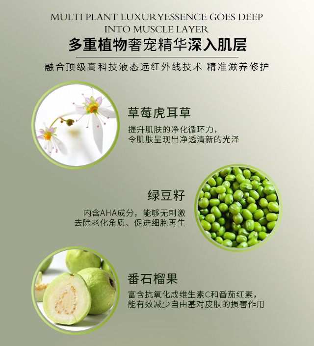 适用皮肤:多种肌肤,特别是缺水、松弛、黯沉的肌肤。