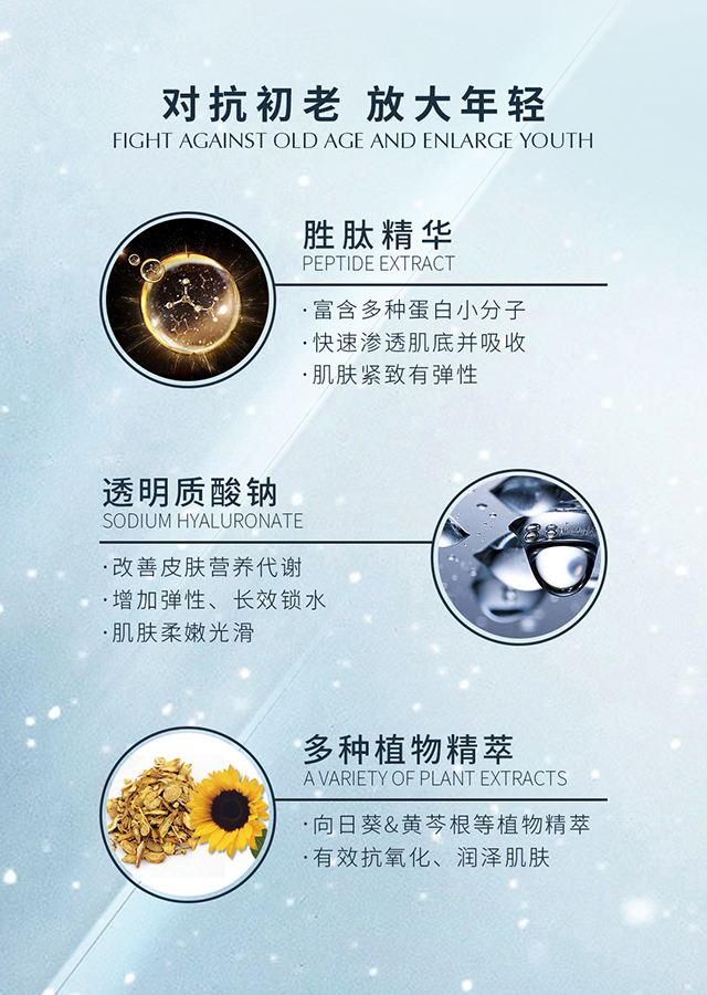 适用皮肤:多种肌肤,特别是缺水、松弛的肌肤。