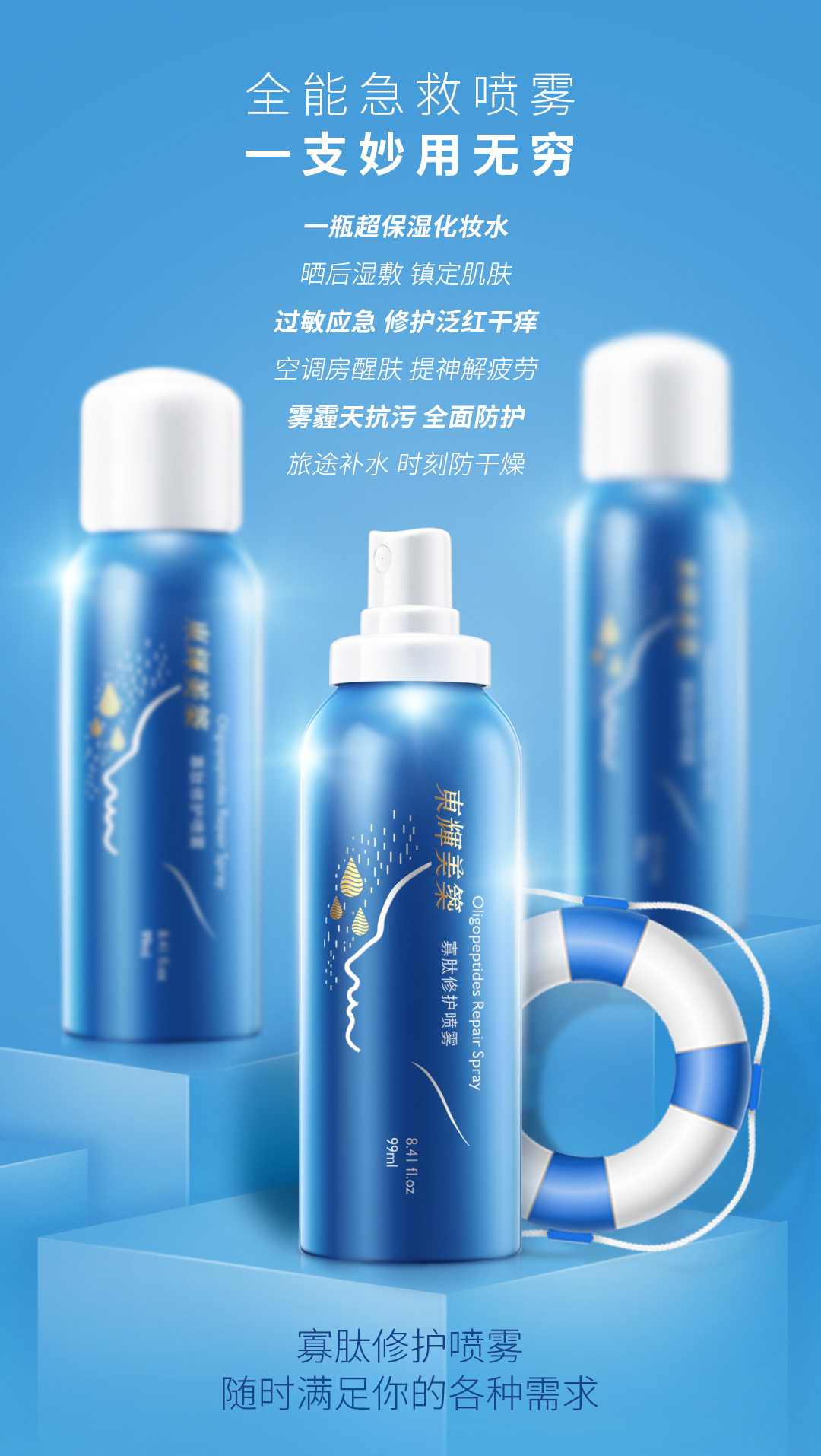 产品功:蕴含浓缩寡肽修护精华,协同多重滋养保湿成分,以高压按摩雾化喷头,使轻盈细密的水雾层层浸润肌肤,冰爽沁透,纾缓因水分挥发造成的二次干燥,防护外界环境对娇弱肌的不利影响,时刻给予肌肤安舒愉悦的呵护,锁水修护双管齐下,尽现饱满柔滑肌。