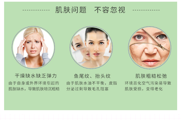 产品说明:丰富的营养滋养肌肤改善皮肤皱纹和拉伸纹,让肌肤保持健康年轻状态的厚度与弹性。