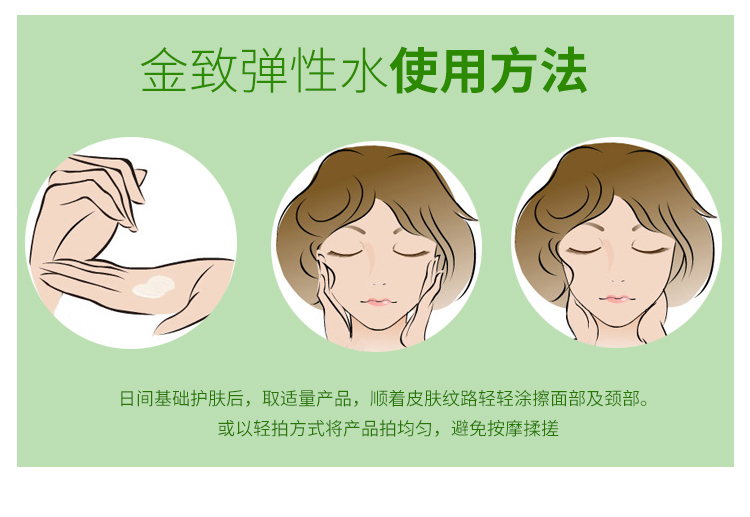 使用方法:取适量本品均匀用于面部 轻轻按压之吸收。