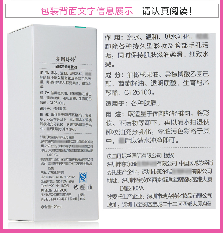 使用方法:层卸妆油能深层卸除彩妆污垢,遇水乳化,代谢面部多余老化角质,干手干脸取适量于面部打圈按摩,避开眼周肌肤,用清水过掉后再用洁面乳洗净。