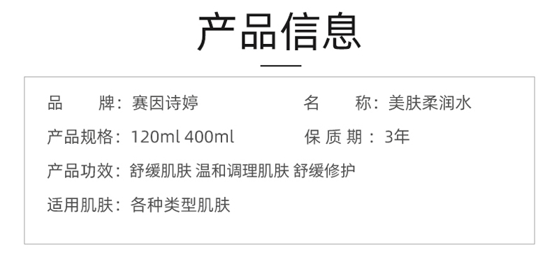 赛因诗婷Ⅱ代美肤柔润水120ml