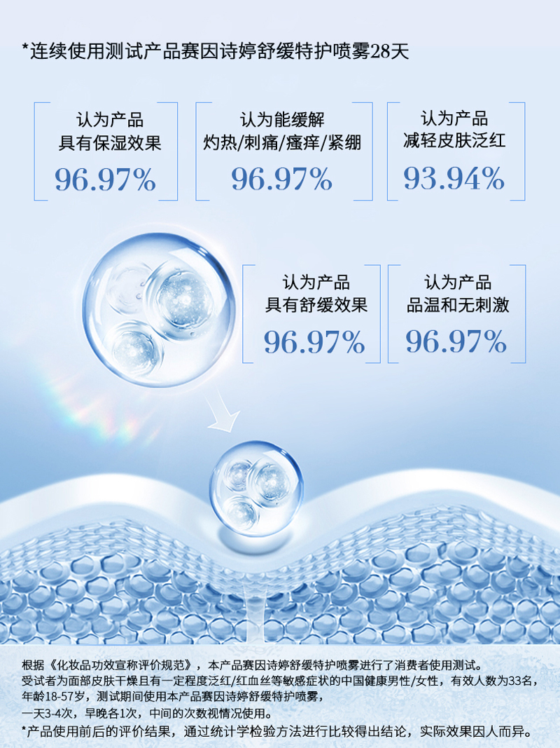 产品功效:补水保湿,舒缓修护,改善肌肤干燥、紧绷等状态, 令肌肤水润舒适。