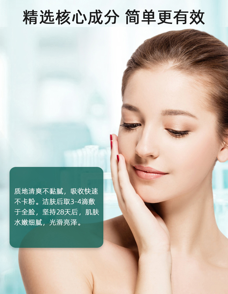 使用方法:洁肤后,取3-4滴敷于全脸,轻拍至吸收即可。