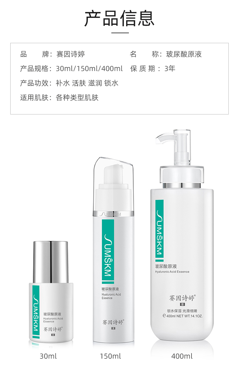 赛因诗婷 玻尿酸原液400ml 补水锁水、光滑细腻、水润亮泽、缓解干燥、敏肌可用