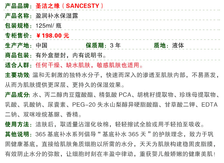 圣洁之缘 滢润水分精华乳400ml 补充水分及营养、水分饱满,活力十足