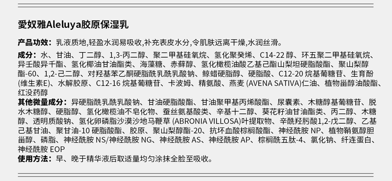 爱奴雅 胶原精纯露120ml 质地细腻、肤感嫩滑、补水保湿、改善干燥/细纹肌肤