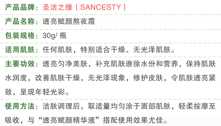 圣洁之缘 透亮赋颜精华液30ml 水润光滑、细腻透亮、饱满紧致、年轻光彩