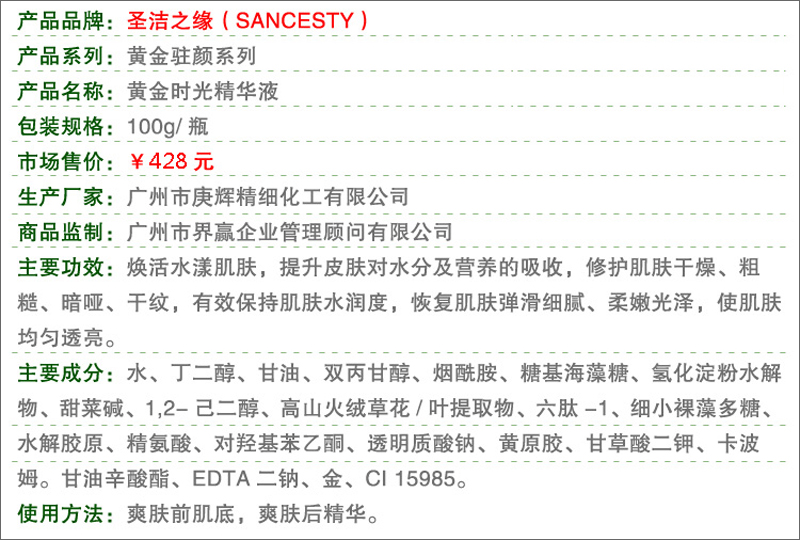 圣洁之缘 黄金驻颜精华霜50g 减缓老化、弹力紧致、抗皱减纹、弹滑光泽