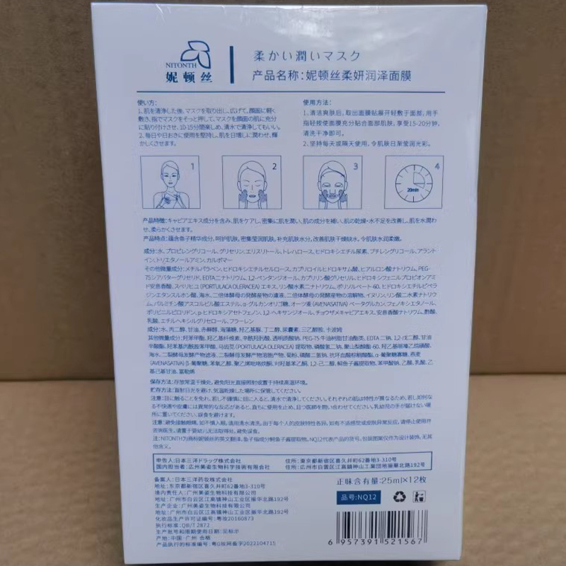 妮顿丝 净透泽颜面膜28ml*6片 修护受损皮肤,滋养皮脂,退红热,嫩白润亮