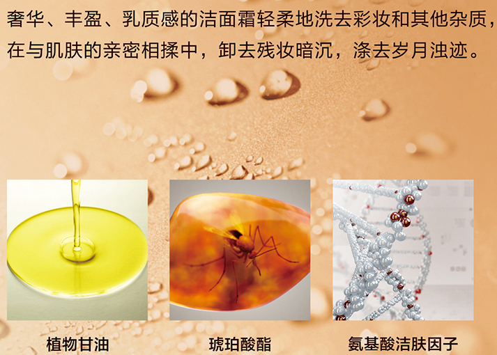 产品功效:奢华、乳质感的洁面霜轻柔地洗去彩妆和其他杂质,在与肌肤的亲密相揉中,卸去残妆暗沉,涤去岁月浊迹。 优良的亲和性,深入肌肤毛孔,溶解皮脂污垢及不能很好脱落的角质。多种植物精油,温和清洁并滋润肌肤,抵御肌肤细纹,从洁面开始。