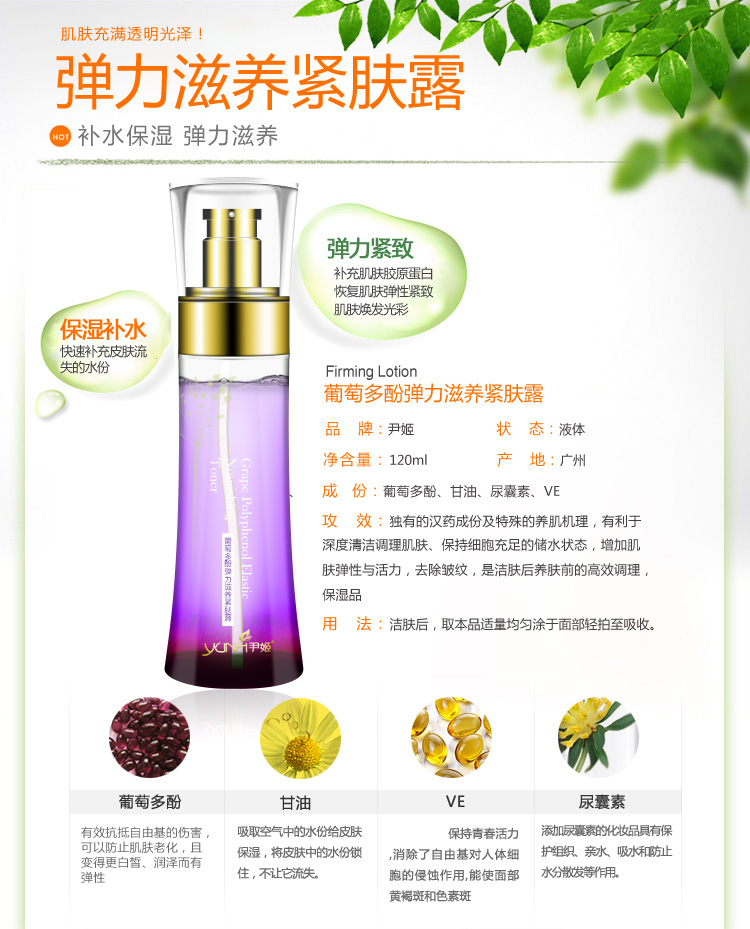 尹姬 葡萄多酚 弹力滋养紧肤露 120ml