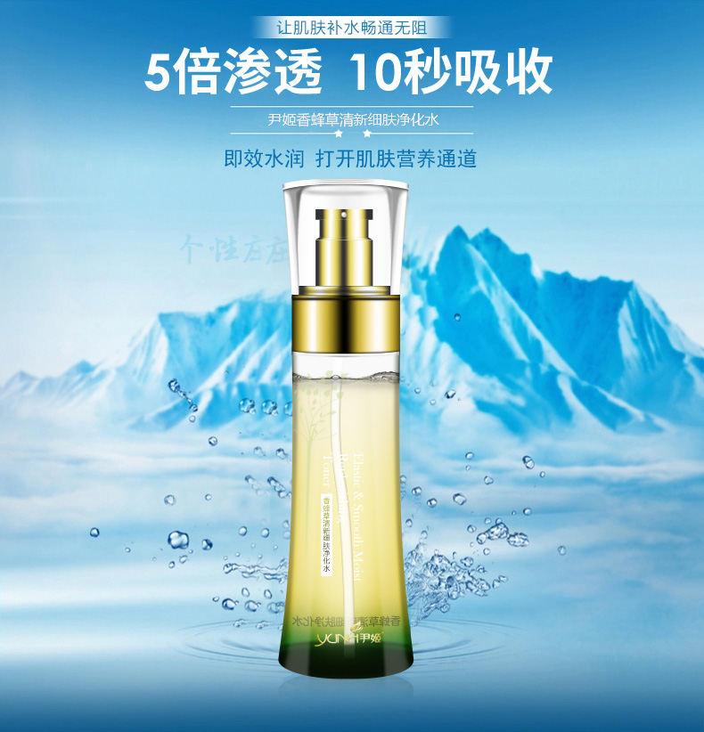 产品功效:补充水分,调理油脂分泌失衡的肤质,深入净化毛孔,调整PH值,令肌肤纹理细致光滑,促进角质层的自我更新频率,令肌肤清新自如,水嫩无油。