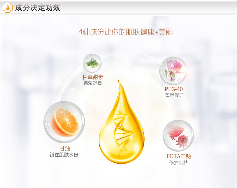 产品功效:为肌肤补充大量的水分和养分,调理肌肤酸碱值至正常状态,帮助肌肤形成保护膜,令干燥不适的肌肤回复水嫩柔滑。