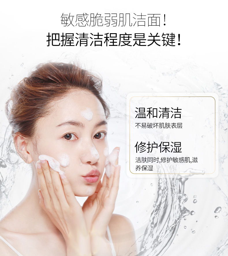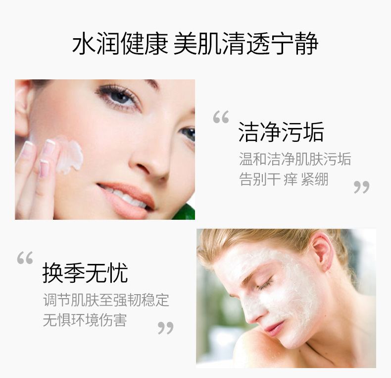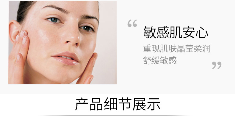 产品功效:根据脆弱肌肤的特点调配而成,能温和彻底地清洁、抚慰肌肤,令肌肤舒适自然,清新洁净。