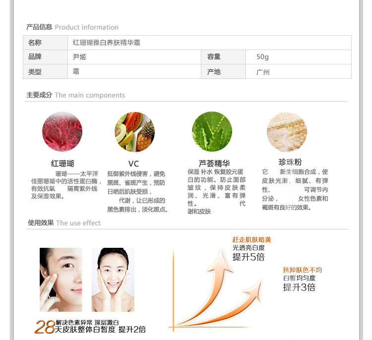 尹姬 红珊瑚 雅白养肤精华霜50g