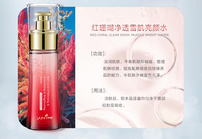 产品功效:滋润肌肤,平衡肌肤酸碱值,整理肌肤纹路,提高肌肤吸收后续保养品的能力,令肌肤水嫩富有光泽。