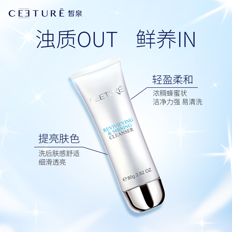 皙泉 7倍水海萃盈透洁颜霜80g 弱酸性丰富泡沫、清洁污垢、控油去痘、盈润舒缓、...